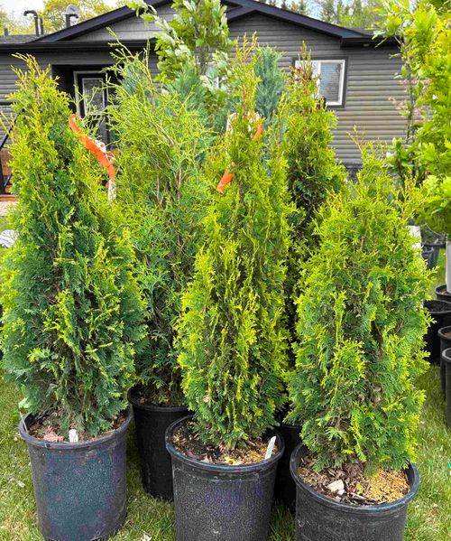 Skybound Cedar is the perfect hedging cedar for Alberta. It will take heavy shaping and continue growing at a brisk pace. This cedar can handle winter temperatures and wind. We have seen these cedars thriving perfectly on acreages where they take full wind in the winter. If you are looking to have a bulletproof cedar, this is the perfect choice. Typically you will see 6-12" of growth per year. Growing instructions: Plant Skybound Cedars in rich top soil and they will grow much quicker but they can handle clay soils. These cedars will suffer if they are faced with long-term drought. You must keep the roots moist for the first couple of summers and they will become more drought tolerant over time but it is best to continue deep watering through any future droughts as well. A drip irrigation system takes the guessing out of when you need to water and how much. It is affordable and easy to DIY. Hedging instructions: We recommend mulching the whole row of cedars 4 feet wide to prevent the soil from drying out around the trees. Plant these trees 3-4ft apart to create a nice privacy wall.