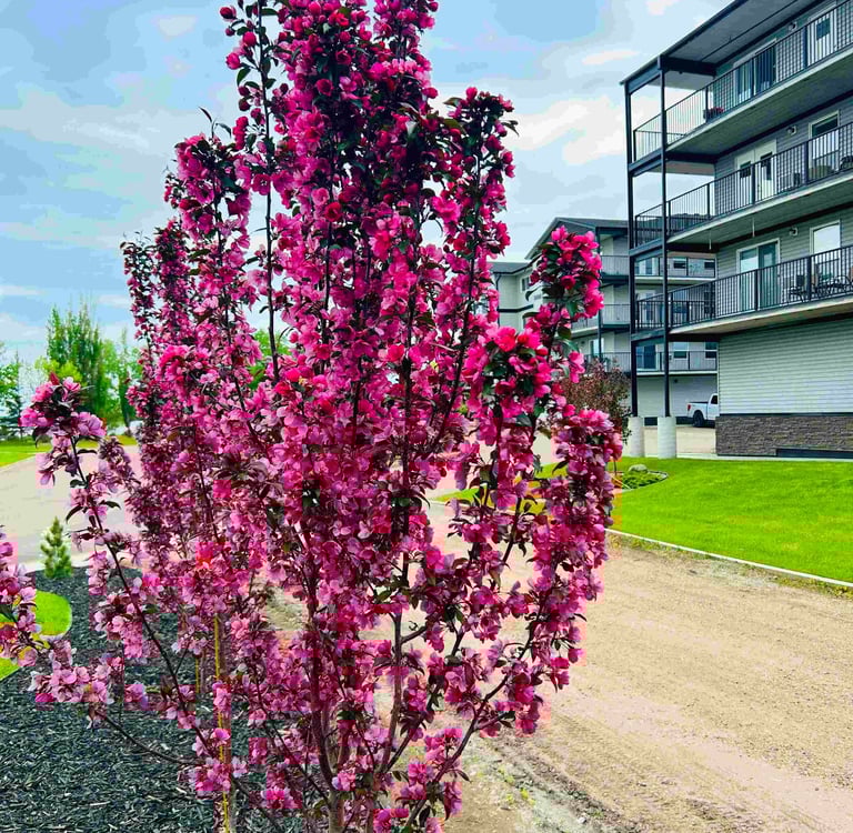 We carry only the most desirable, hardy to our climate, maples, oaks, flowering and columnar trees. We have firery fall colors, rare but columnar oak and crabapple choices for privacy and small yards and ornamental flowering trees which give the same vibe as Japanese Cherry trees with no fruit. Some examples of our trend-setting trees include: